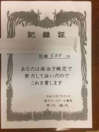 参加児童71人中500m完泳者数は43名でした。昨年度は同じ71人中32名だったので11人も増えました。