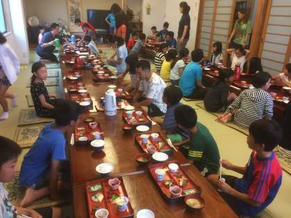 おはようございます。いよいよ最終日です。ありがたいことに体調を崩した児童はおりません。朝食を食べ終わりました。残念ながら大雨です。気温も低いので、最終日は室内レクです。