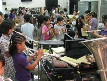 写真(中)----本番で一生懸命演奏する子どもたち。