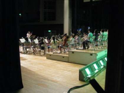 写真(下)----舞台の上手(かみて)から見た本番のようす。