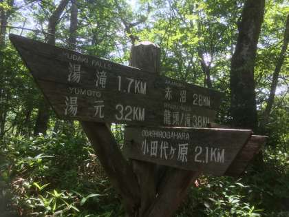 気持ちの良いハイキングです。湯滝から1.7km、赤沼まで2.8km、まだ中間地点までは来ていません。戦場ヶ原に来ました。
