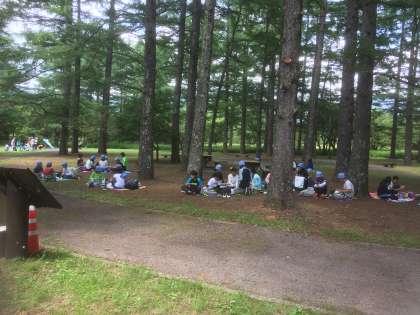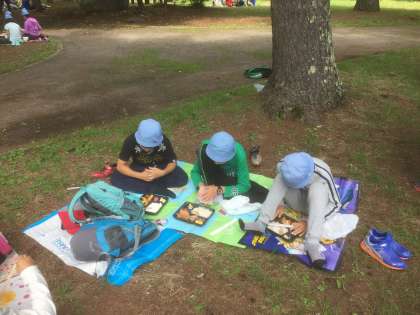 108人全員がハイキングを歩ききりました。ハイキングも終わり、お腹ぺこぺこです。三本松公園に移動して昼食です。