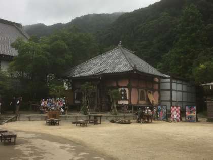 ネズミ小姉に会いステッカーをもらいました。会えた人だけにもらえるので、マニアの人には価値があるのかもしれません。その後、子どもたちと一緒に地獄寺に入りました。あまりの恐さに?子どもたちは大絶叫!皆すごい顔をして写真に写ったので公開できません。遠景の写真を載せます。これが地獄寺です。