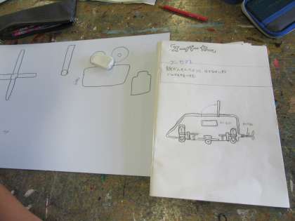 子どもたちが未来を走るスーパーカーを想像して、設計図を作りました。