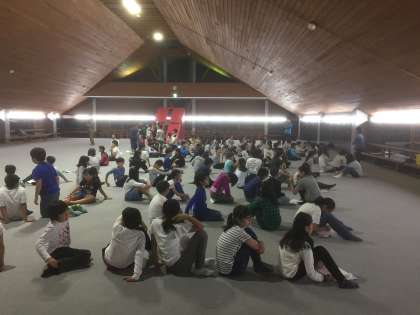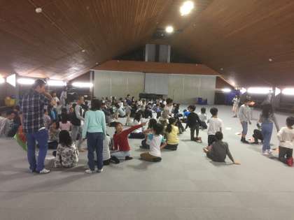 室内レクが始まりました。大盛り上がりです。村の会堂は子供たちの声で響き合っています。とにかく子供たちは元気です。