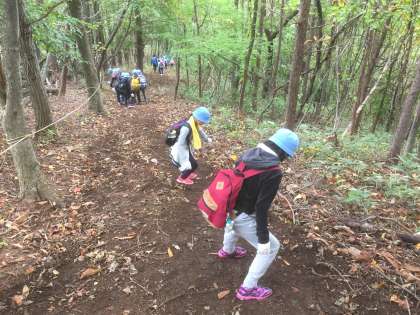 午後14時20分鉱石山ハイキングを終え、ふじやまビレジに戻りました。はじめは登りの連続でペース配分をかなりゆっくりめとしました。下りは急なところはペースを抑え、なだらかなところは軽快に降りて来ました。皆、クタクタだとは思いますが少し休んだらキャンプファイヤーです。