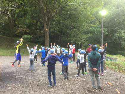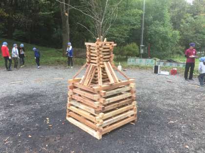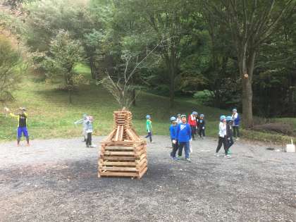 キャンプファイヤーの準備が整いました。これから盛り上がります。