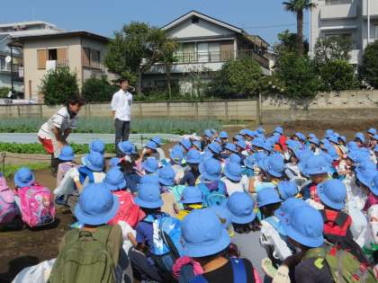 学校から歩いて20分ほどの所にある秋山農園さんに、さつまいもを堀りに行きました。子どもたちは、土からひょっこりと顔を出したさつまいもに大興奮!「こんなに、おおきいのがとれたよ!」と、さつまいもを高く持ち上げて報告してくれました。