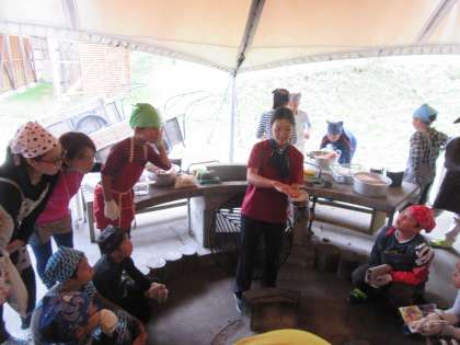 かまど係、お米係、カレー係に分かれて協力して美味しいカレーライスを作ります。