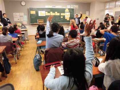 授業後は明星大学研究員京極澄子先生をお招きして、すべての子どもがわかりやすい授業にするための指導について先生たちが活発に発言し合う、研究協議を行いました。