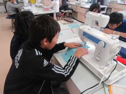 5年生の家庭科では、ミシンを使った授業に入りました。