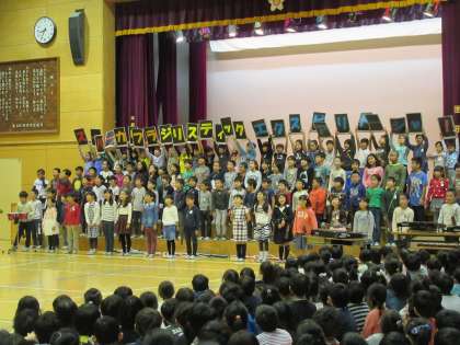 合奏後は、全校児童で「みんな大好き」を合唱しました。