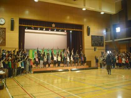 本日、1・2時間目を使って、学芸会に向けて歌と通し練習を行いました。