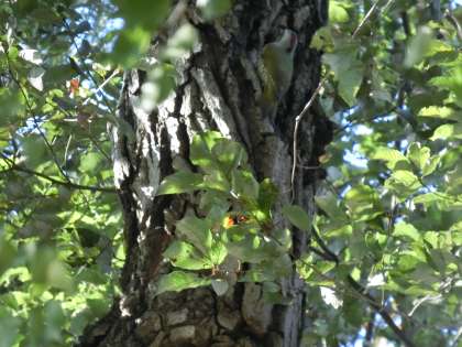 井の頭公園では、校長先生はずっと本部に座っていました。メタセコイヤの大きな木の方から、カタカタカタカタカタという連続した音が聞こえてきました。何の音だろうと考えたときにキツツキが木をたたいているのかなと思いました。主事の佐竹さんに尋ねたらアオゲラということでした。アオゲラはキツツキの仲間です。さっそく校長先生は、スマートフォンでアオゲラを検索しました。アオゲラの鳴き声とドラミングの音という動画を見てみると甲高いアオゲラのピューーーという鳴き声とともに、まさに今その場所で聞こえている音と同じカタカタカタカタカタという連続した音が聞こえました。