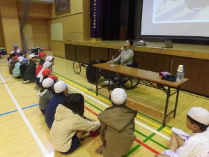 11月28日は体力向上プログラムでアスリートのお話を聞きました。