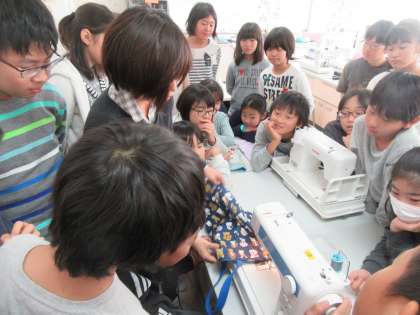 全体で説明を聞いてから、順番にミシンで縫っていきました。