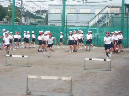 まずは、ハードル走の仕方を聞き、自分の歩幅に合ったコースで練習しました。