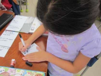 今日はみんなでかるたを作りました。一緒にかるた遊びをするのが待ち遠しいです。