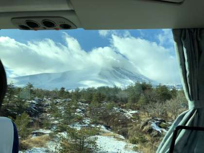 バスの窓からの写真は、鬼の押し出し付近からの浅間山です。