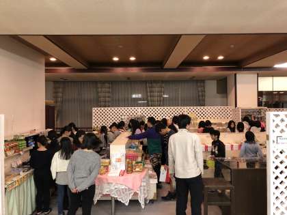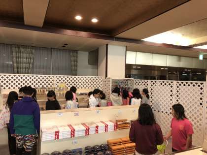 予定通りお風呂に入り、その後の今日の自由時間は、男子は部屋で過ごし、女子はおみやげの時間でした。おみやげ屋さんは大盛況でした。