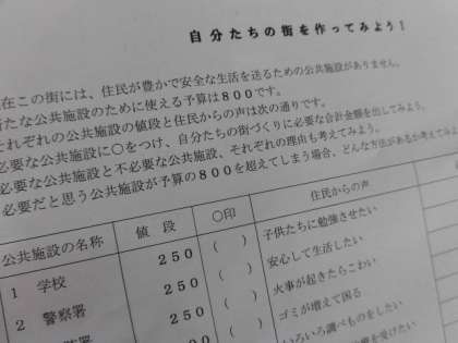 各クラスで税金の使われ方を学ぶためにグループワークで実際に税の使い道を考えていくことを通して、税の大切さを学びました。