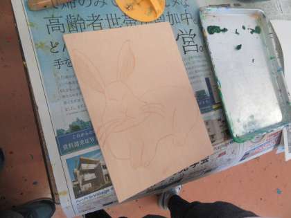 自分で決めた桜小に関連するカルタを考え、彫刻刀で彫っていきます。
