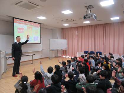 KDDIの方をゲストティーチャーとしてお招きして、スマートフォン・携帯電話の使い方についてお話ししていただきました。