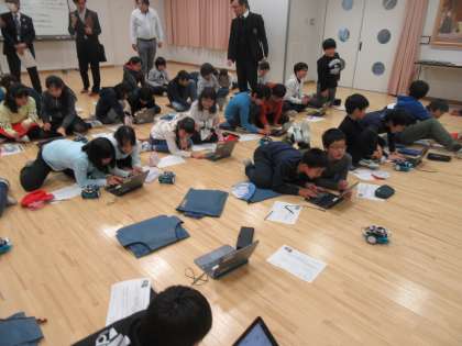 今回の授業では、パソコンだけでなく、ロボットを使って行いました。