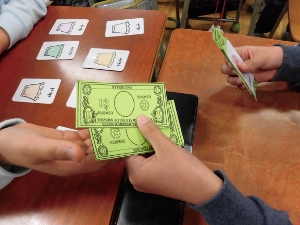 今回は、お店屋さんとお客さんに分かれて、買い物で使う英語を学習しました。