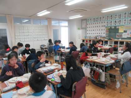 給食でみんなと食べるチーズケーキは格別においしいようです。
