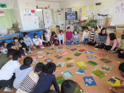 3学期最後の図工の授業では、桜小カルタを使って、大カルタ大会をしました。