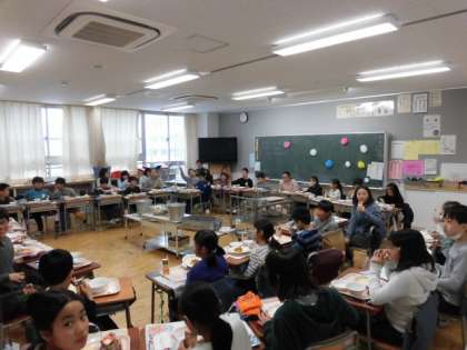 1年間6年生が中心となって活動してきた「桜ふれあいタイム」の最後は1年生〜5年生までの下級生に招待してもらい、給食を縦割りのグループでいっしょに食べました。