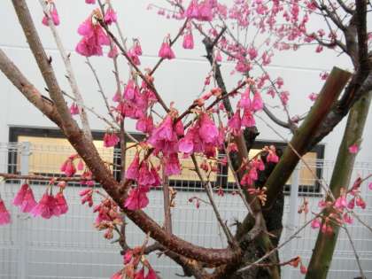 実はフジザクラという木です。マメザクラともいいます。花を下向きにして咲くのが特徴です。