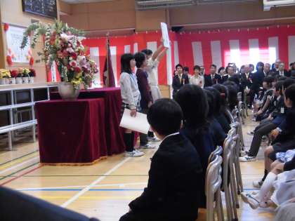 入学式では、6年生全員で新1年生を温かく迎えてあげました。
