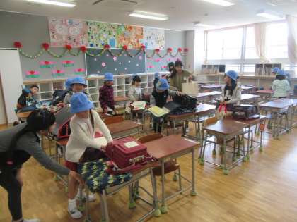 教室に着いたら、朝の支度、ランドセルの置く場所などを丁寧に教えてあげました。
