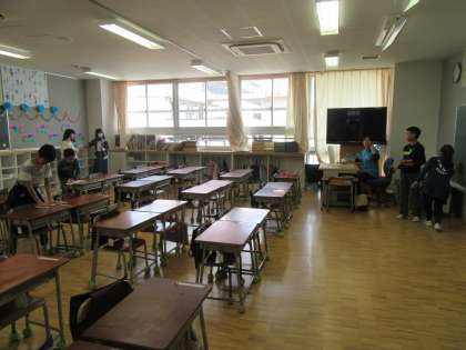 掃除の時間は、担当した子どもたちが1年生の教室に行き、掃除をします。