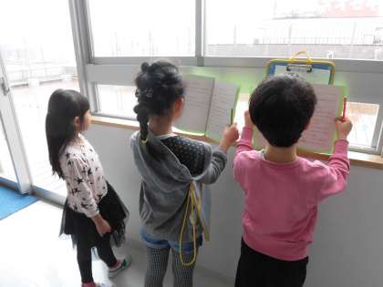 事前に自分たちで案内する教室を確認するなど、準備から真剣に取り組んでいた子どもたち。