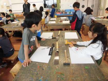 待ちに待った図工室での図画・工作の授業がはじまりました。