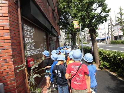 子どもたちは、教室から離れ、実際に町中を歩きながら確認することに、興味津々の様子でした。