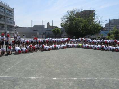 今日は、校庭で波の練習をしました。