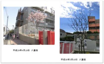赤門そばの八重桜は、葉も出ていないのでかなり状態としては危ない気がします。主事さんにお話を伺うとあの辺りは、土の中にコンクリートや石などの破片が多く埋まっており、土の状態が悪いのではないかということでした。校長先生は、土の状態を良くしてもらわなければと思いました。