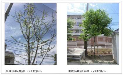 朝礼台うしろのハクモクレンは、以前選定といって、枝を落とした際に木の健康を害してしまった可能性があるという話を聞きました。