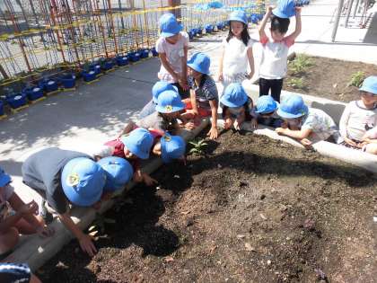 朝顔の水やりをするかどうか、なやんでいたので花だんにいきました。