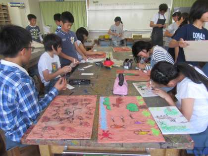 古代にあったであろう壁画を想像して作った作品は、それぞれ個性があり、面白い作品ばかりです。