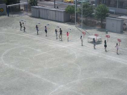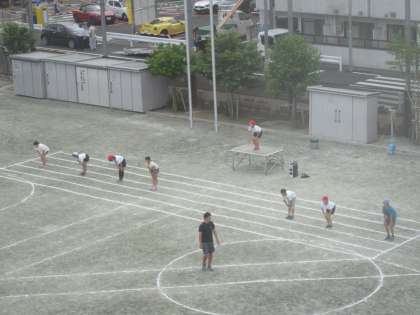 月曜日にある全校練習に向けて、プラカード係と準備体操係が頑張っていました。
