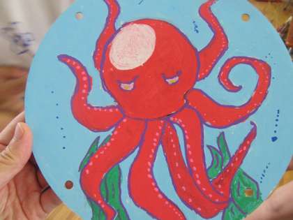 太鼓の面には、オリジナルの絵と自分の好きな言葉をかきました。