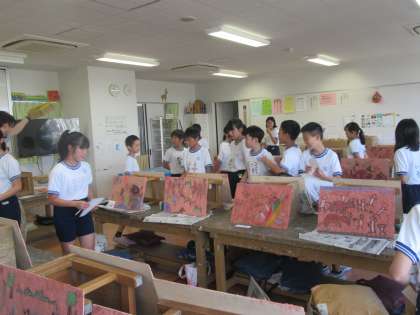 友達の作品のよいところをたくさん探そうと、観ている子どもたちの姿がとても印象的でした。