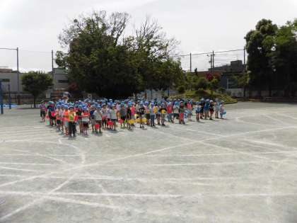 手にはうちわを持ち、足には鈴を付けて、すずめになりきって踊りました。