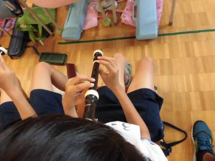 子どもたちは「シ」と「ラ」の吹き方を習いました。
