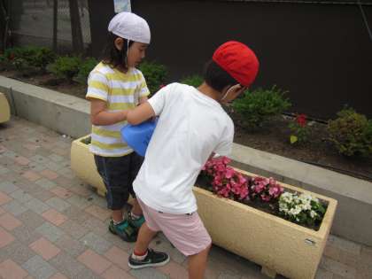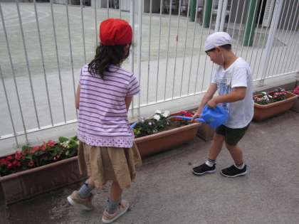 子どもたちがたっぷりお水をあげているので、花もきれいに咲いています!